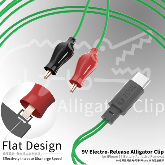 2UUL PW03 Battery Quick Release Cable for IPhone 16 Battery Adhesive Removal 9V Alligator Clip Repair Clip Tools