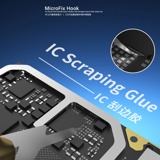 2UUL DA12 MicroFix Hook for Phone PCB Underfill Clean 3 Blades with Ultralight Carbon Fiber Holder Set