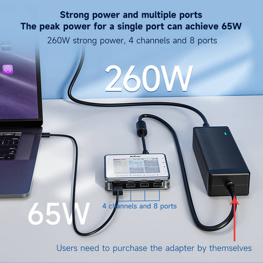 AiXun PF26 260W Fast Charger Multi-channel 8 Ports Digital Display USB Charging Station for All Mobile Phone Tablet Smart Device