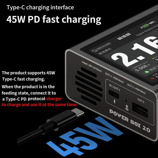 MECHANIC POWER BOX 2.0 DC-1205 Portable Adjustable Power 12V5A Output Built-in Battery Power For Mobile Phone Repair Tools
