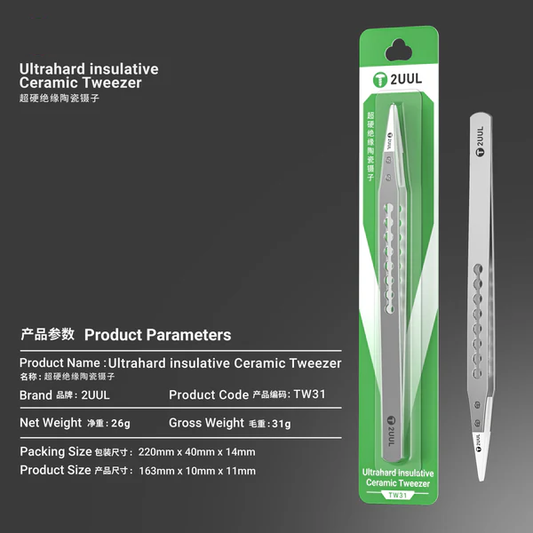2UUL TW31 Ultrahard insulative Ceramic Tweezer for Precise Phone Board Repair