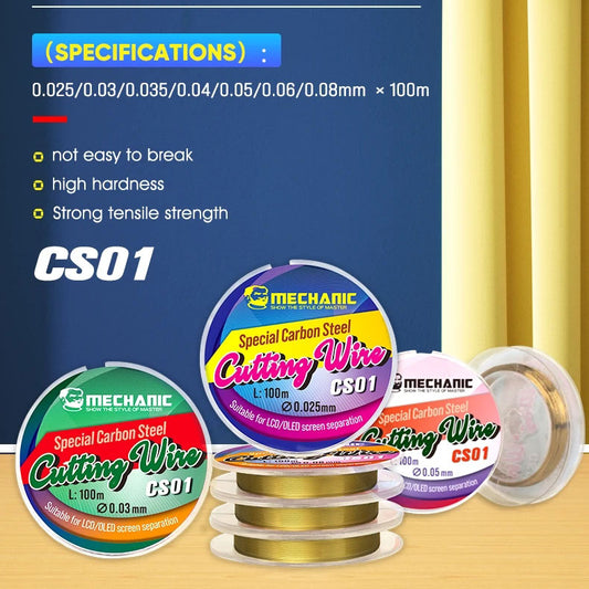 MECHANIC CS01 High Hardness Special Steel Cutting Wire for Mobile Phone LCD Screen Separation Repair Tools 0.025mm--0.08mm