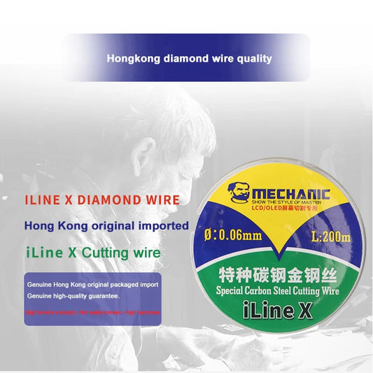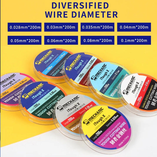 MECHANIC iTough X High Hardness Special Steel Wire for Mobile LCD OLED Screen Cutting Separation Line 0.028mm - 0.1mm X 200m