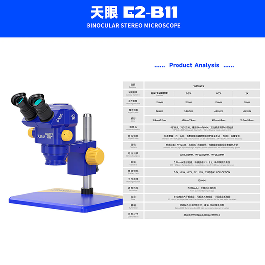 • MECHANIC Eye E2-811 Industrial Binocular Stereo Microscope 7X-60X Magnification 360 Degree Rotation For phone Repair Tools