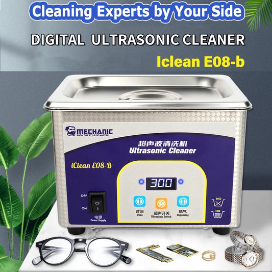 • MECHANIC iClean-E08B Ultrasonic Cleaner 0.8L 80W High Frequency Cleaning Machine For Motherboard Lens Phone Repair Washing Tools