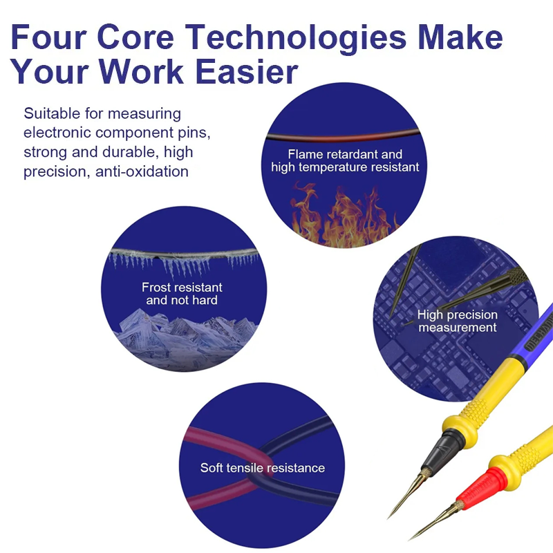 Mechanic RP15 universal stainless steel lead probe test pen with soft silicone wire for digital multimeter. Mechanic RP15 multimeter test pen for measuring pins of electronic components, durable.