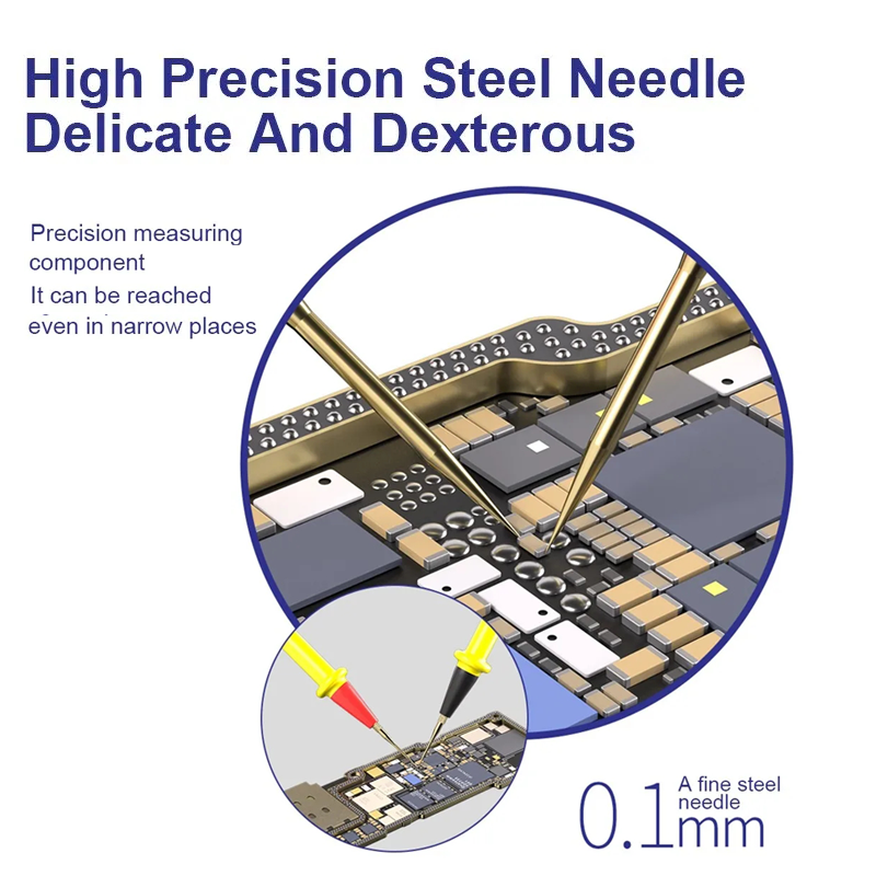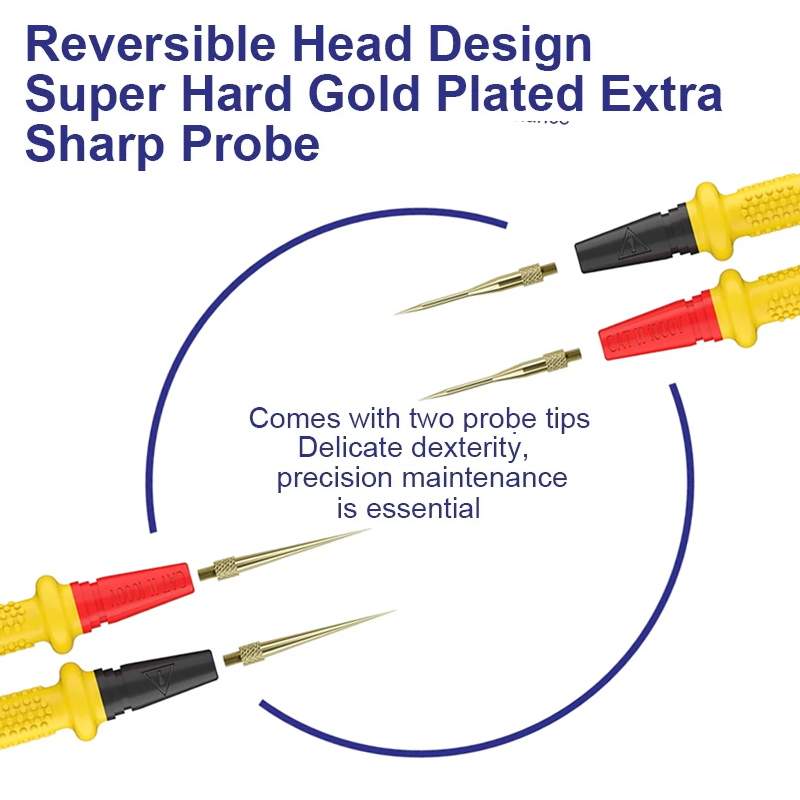 4. Reversible head design, super-hard gold-plated tip, sharp probe, comes with two probe tips, smart and delicate, precision maintenance is essential.