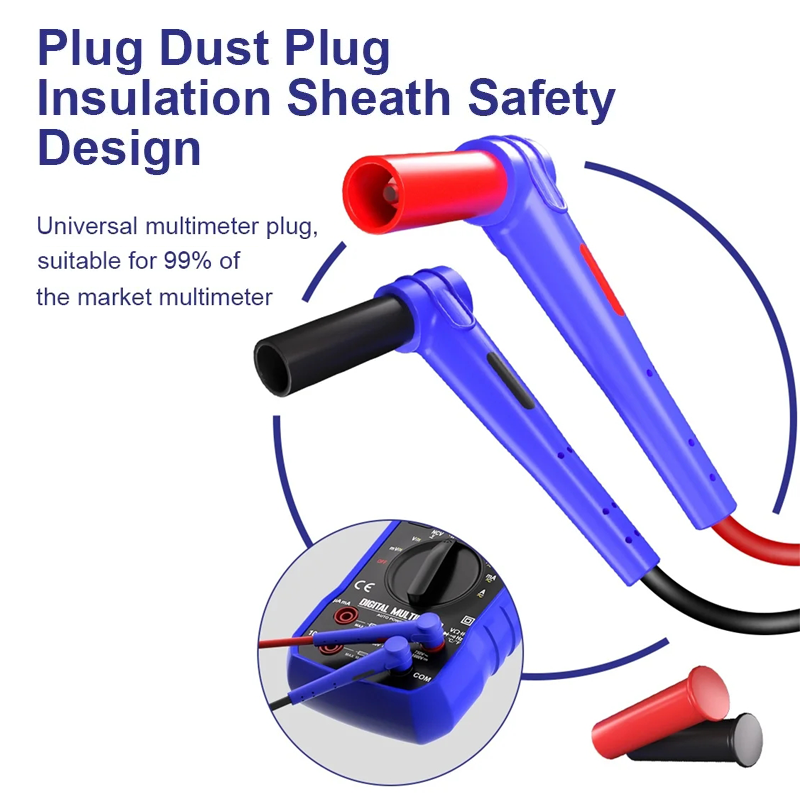 2. Plug dust plug, insulation sheath safety design, multimeter plug, suitable for 99% of multimeters on the market.