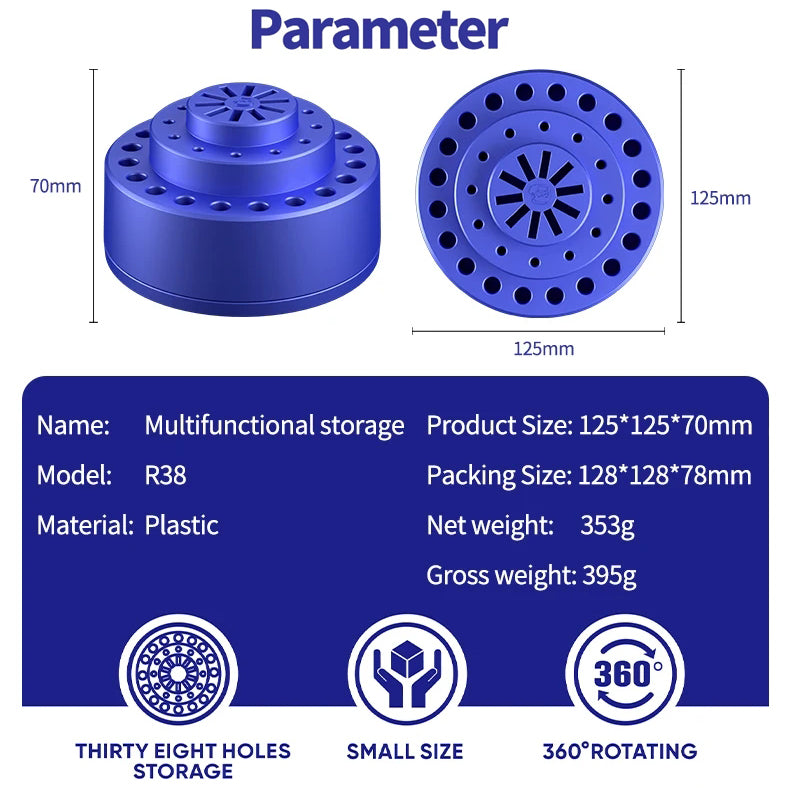 1. R38 multifunctional storage,  small size, large capacity, 360°rotation, simple shape.